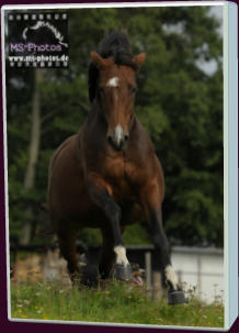 * geb. am 12.01.2004 in Morgenitz (Insel Usedom)* sie ist mein erstes selbstgezogenes Fohlen...* sie wurde in das Haupstutbuch I eingetragen* sie bekam ihr 1.Fohlen am 18.05.2009* das Fohlen bekam die Fohlenprämie